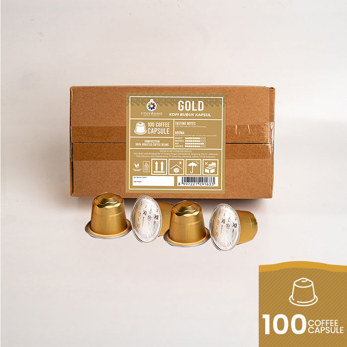 Elevate your coffee moments with Coffesso Capsule Gold. This luxurious blend features nutty notes, the sweetness of brown sugar, and brilliant hints of cacao, creating a rich and indulgent experience in every sip.